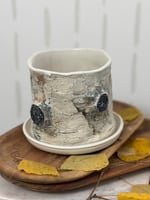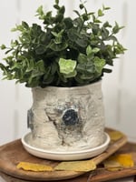 A stunning hand built stoneware planter, complete with drainage holes and drip saucer.
